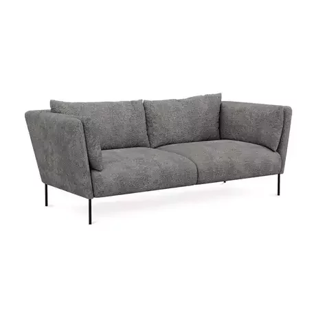 Ищете компактный двухместный диван, который станет центром вашей гостиной? Copenhagen с металлическим основанием и глубиной сиденья до 70 см — решение для тех, кто ценит комфорт и скандинавскую сдержанность. Тёмно-серое букле не только выглядит стильно, но и справляется с повседневной эксплуатацией. Три главных преимущества: - Экологичные материалы — каркас из натурального дерева класса Е1 без выделения формальдегидов - Многослойное наполнение — пружины "змейка", пенополиуретан и холлофайбер для оптимальной поддержки - Металлические ножки высотой 20 см — легкость уборки под диваном и визуально больше пространства Copenhagen идеально впишется в помещение от 14 м². При компактных габаритах он обеспечивает комфортную посадку для двух человек с глубиной сиденья до 70 см — достаточно для комфортного отдыха. Диван подойдет для молодых пар, ценителей скандинавского стиля и тех, кто не хочет перегружать интерьер массивной мебелью.Технические особенности: